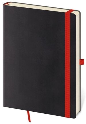 Moderní zápisník v měkké ohebné vazbě s kulatou příčnou gumičkou přes hřbet představuje nejnovější způsob zpracování.
