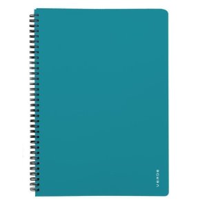 Kancelářský blok s barevnou rýhovanou obálkou z polypropylenu Bílý bezdřevý papír 80 g Zaoblené rohy, 140 listů Listy mají mikroperforaci pro snadné odtržení a 4otvorové děrování Kovová spirála Čtvereček …