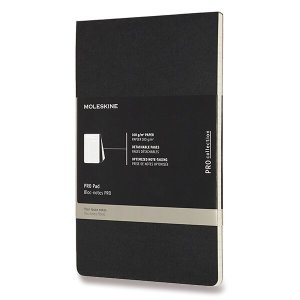 Lepený poznámkový blok z kolekce určené profesionálům má zakulacené rohy, linkované strany jsou uspořádané do tří sekcí.