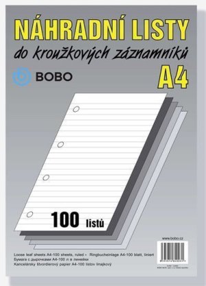 Náhradní listy formát A4, 100 listů. Sada náhradních linkovaných listů do kroužkových záznamíků.