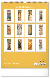 Nástěnný kalendář ve velkém formátu s reprodukcemi obrazů oblíbeného secesního malíře českého původu.