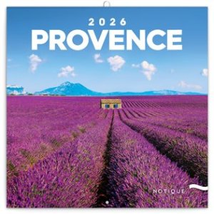 Dvanáct fotografií z levandulí proslulé krajiny Provence v poznámkovém kalendáři se šestijazyčným kalendáriem.