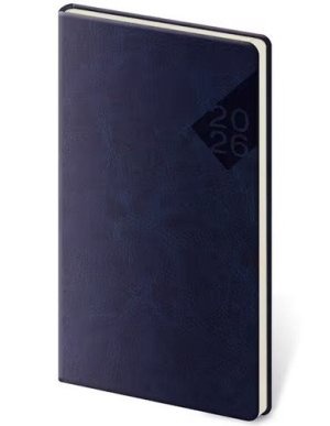 Plánovací denní diář Balakon 2026 v tmavě modrém provedení, doplněný o stříbrný letopočet.