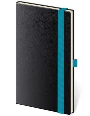 Praktický týdenní diář v odolném PVC obalu, vhodný do tašky či kabelky.