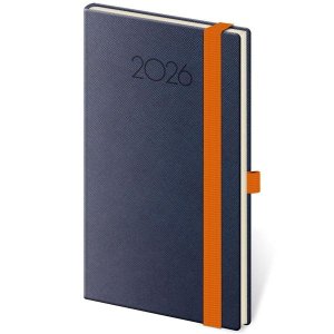 Elegantní kapesní týdenní diář ve výrazném modrém odstínu.