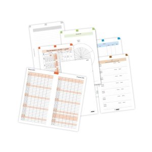 Denní sada A5 obsahuje: diář, A-Z adresář, plánovací kalendář, denní plány termínované, týdenní plány levé, roční plán, aktivity, nezapomeň, týdenní rozvrh, roční rozvrh, projekt, finance, pravidelné …
