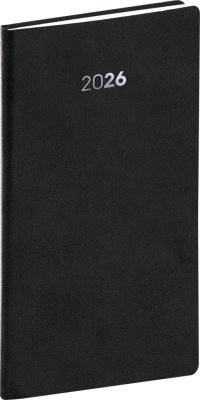 Plánovací kapesní diář Balakon 2026 v černém provedení, doplněný o stříbrný letopočet.