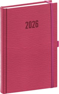 Denní diář Aprint 2026 ve fialové barvě.