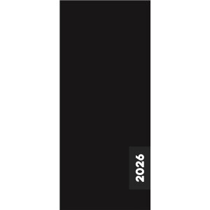 Měsíční diář pro rok 2026 z PVC Rozměr 82 x 184 x 5 mm Celkem 32 stran Info strany obsahují: přehledný kalendář 2026/2027, plánovací kalendář 2027, státní svátky a významné dny, prostor pro poznámky, …