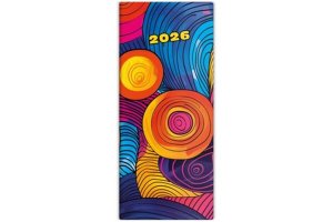 Měsíční diář pro rok 2026 z PVC Rozměr 82 x 184 x 5 mm Celkem 32 stran Info strany obsahují: přehledný kalendář 2026/2027, plánovací kalendář 2026, státní svátky a významné dny, prostor pro poznámky, …