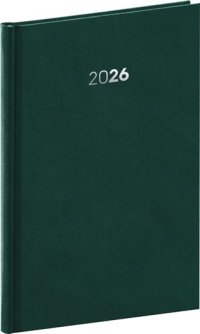 Plánovací týdenní diář Balakon 2026 v zeleném provedení, doplněný o stříbrný letopočet.