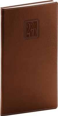 Kapesní diář Tomy 2026 v hnědo-červené barvě.