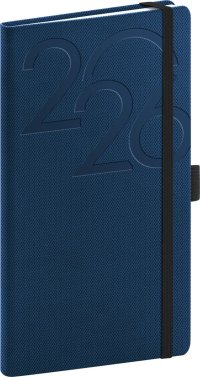 Praktický týdenní diář ve výrazném modrém provedení s elegantní šedou gumičkou a poutkem na pero.