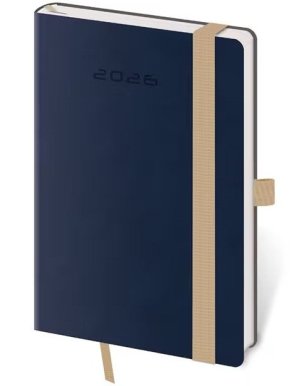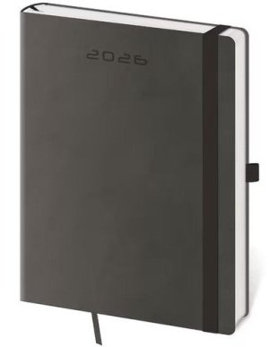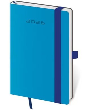 Diář je vyroben ze zajímavé matné koženky s nepravidelnou strukturou, navíc je doplněn o gumičku pro uzavření v kontrastní barvě.