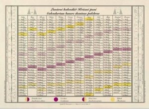 Poznámkový kalendář s reprodukcemi nejznámějších obrazů českého secesního malíře Alfonse Muchy, známého nejen svou tvorbou plakátů se Sarah Bernhardtovou.