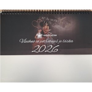 Rozměr: 30 x 19 cm Měsíční kalendárium Počet listů: 14 Charitativní kalendář Hvězdy dětem pro rok 2026 s názvem " All you need is love" VŠE, CO POTŘEBUJEŠ JE LÁSKA Spolek Hvězdy dětem již mnoho let vytváří …