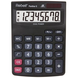 Kapesní kalkulačka 8-místný displej Funkce: odmocnina, procenta Funkce automatického vypnutí Barva: černá Materiál: plast, gumová tlačítka Rozměry: 89 x 59 x 11 mm Bateriové napájení Baterie: LR44