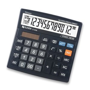 Stolní kalkulačka Velký 12-ti místný LCD displej Opravné tlačítko Výpočet marže Výpočet odmocniny Výpočet procent Třítlačítková nezávislá paměť Tlačítko dvojité nuly Tlačítko změny znaménka Označení …