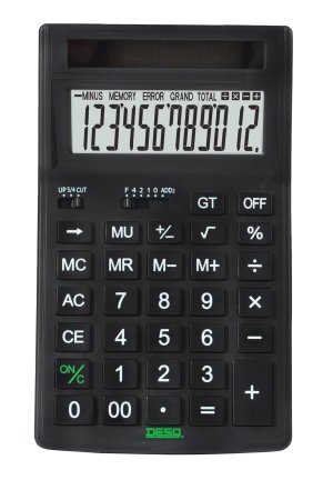 12-místný velký LCD displej se zobrazením funkcí Profesionální výpočet procent Výpočet zisku pomocí tlačítka % Převody měn Výpočet DPH 4-tlačítková paměť Označení řádu-tříčislicové čárky Tlačítko +/- …