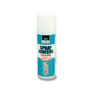 Kontaktní čiré sprejové lepidlo Bison Spray Adhesive na bázi Styren-butadienového kaučuku.