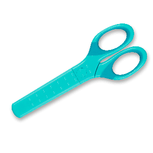 Školní nůžky vel. 13 cm se zakulacenou špičkou a měřítkem na čepeli.