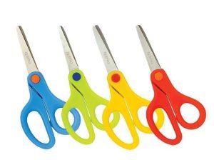 Ergonomické školní nůžky s měkkou rukojetí. Čepele z broušené nerezové oceli, zaoblené špičky.