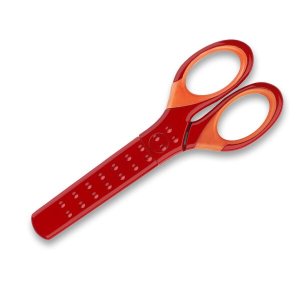 Ergonomické školní nůžky s měkkou rukojetí. Čepele z broušené nerezové oceli, zaoblené špičky.