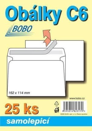 Obálky 162x114 mm, balení 25 ks. Balení klasických poštovních obálek ve formátu C6.