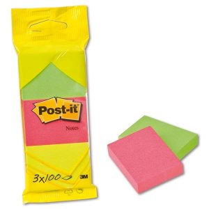 Post-it® bločky v neonových barvách 24 bločků po 100 listech Počet lístků v bločku: 100 Počet bločků v balení: 24 (21+3 GRATIS) Rozměry: 76,0 x 76,0 mm Barva: mix neonových barev