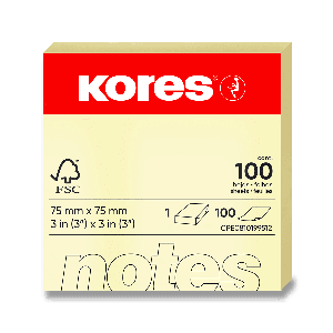 Samolepicí bloček, žlutý. Rozměr 75 x 75 mm, 100 listů.