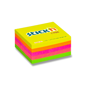 Samolepicí bloček Hopax Stick’n Alternate Neon Notes ve tvaru kostky.