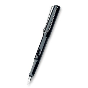Plnicí pero Lamy Safari v provedení Shiny Black má tělo z tvrzeného ABS plastu, nasazovací víčko a odpružený kovový klip. Úchopová zóna je ergonomicky upravená, hrot je z nerezové oceli.