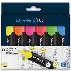 Plochý zvýrazňovač s víčkem v barvě inkoustu v soupravě 6 fluorescenčních barev.