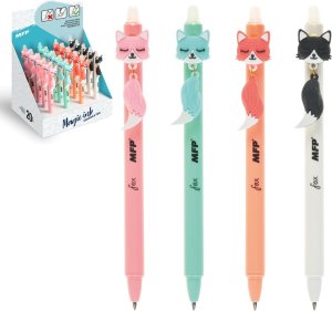 Gumovací kuličkové pero s liškou obsahuje speciální inkoust tzv. vymaž a přepiš, nebo vymaž a nech znovu objevit.