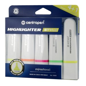 Plochý zvýrazňovač STYLE v atraktivním provedení Pro zvýraznění textu na všech druzích papíru vč. faxového Fluorescenční pigmentový inkoust Zkosený hrot Šíře stopy: 1,0 - 4,6 mm