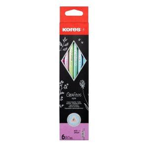 Sada 6 grafitových tužek v metalických barvách Včetně stylové pryže v barvě těla tužky Idealní pro pohodlné psaní, skicování a kresby Ergonomický trojhranný tvar Tvrdost - HB