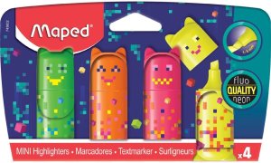 Set plochých mini zvýrazňovačů Pixel Party Mini v zářivých barvách a atraktivní designu. šíře stopy 1 nebo 5 mm fluorescenční inkoust seříznutý hrot ideální velikost do školního penálu