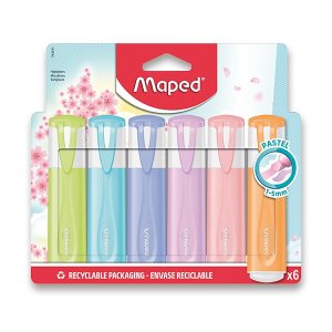 Plochý zvýrazňovač s víčkem v barvě inkoustu v pastelových barvách.