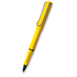 Roller Lamy Safari v provedení Shine Yellow má tělo z tvrzeného ABS plastu, nasazovací víčko a odpružený kovový klip. Úchopová zóna je ergonomicky upravená.