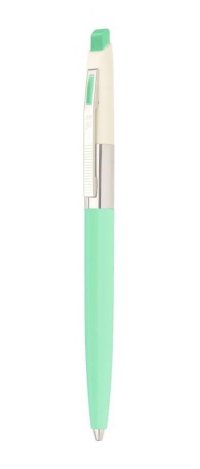Kuličkové pero v pastelově zelené barvě s kovovým klipem, vycvakávacím mechanismem a silným hrotem 0,8 mm.