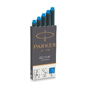 Inkoustové bombičky Parker. Omyvatelný inkoust se dá zmizíkovat a je vypratelný.