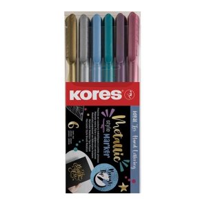 Metalický popisovač se štětcovým hrotem Ideální na kreslení, vybarvování, skicování a kaligrafii Obzvláště vynikne na tmavém papíře Jasný pigment, snadné vedení Metalický inkoust