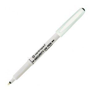 S ERGO držením Speciální permanentní inkoust, jehož stopa písma je viditelná pouze pod UV lampou Speciální permanentní inkoust Válcový hrot Šíře stopy: 0,6 - 1,0 mm Vhodný pro kovové povrchy