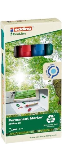 Permanentní popisovač edding 22 z ekologické řady EcoLine má tělo vyrobené nejméně z 90 % z recyklovaných materiálů.