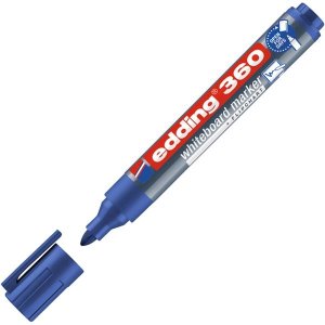 Popisovač na bílé tabule edding 360 obsahuje speciální cap-off inkoust, který nevyschne, pokud je popisovač ponechán pár dní bez víčka.