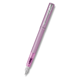 Plnicí pero Parker Vector XL s mosazným tělem a víčkem se saténovým metalickým lakem v kombinaci s chromovými doplňky. Úchopová část pera je transparentní.