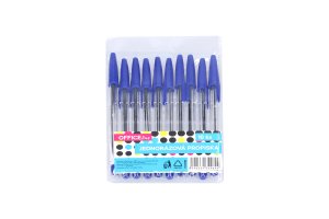Sada modrých jednorázových propisek značky pro psaní ve škole nebo volném čase.