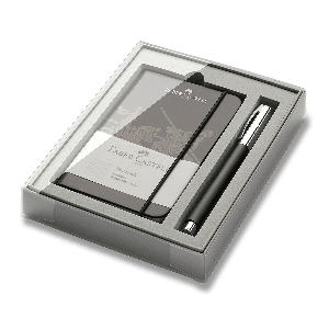 Roller Faber-Castell Ambition Precious Resin s tělem z broušené černé pryskyřice v kombinaci s doplňky z pochromovaného leštěného kovu.