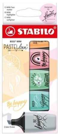 Pastellove STABILO BOSS MINI je novou verzí známých zvýrazňovačů BOSS MINI. * Proměňte každý text ve skutečný poutač! * Známá kvalita velkého STABILO BOSS v praktickém mini formátu. * Podtržení a zvýraznění …