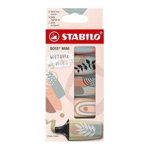 Mini zvýrazňovače STABILO BOSS MINI Naturevibes jsou k dispozici v šesti jemných tlumených odstínech, které jsou inspirovány paletou barev přírody Každý ze zvýrazňovačů je na zadní straně potištěn organickým …